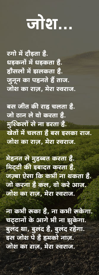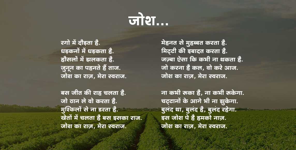 स्वराज ने कई दशकों से भारत के किसानों का दिल जीता है, उन्हें देश की हर मिट्टी पर अजेय बनाकर. अब चलिए एक ऐसे भविष्य की ओर जहाँ सर्वश्रेष्ठ टेक्नोलॉजी और पावर मिलकर नए युग के आधुनिक किसानों के हर टार्गेट को मुमकिन बनाएंगे चाहे वो टार्गेट उपज का हो या बेहतर ज़िंदगी का.